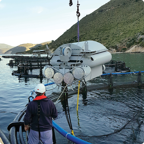 Full Featured Robots for Fish Farms from the Pacific to the Med